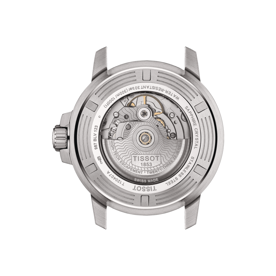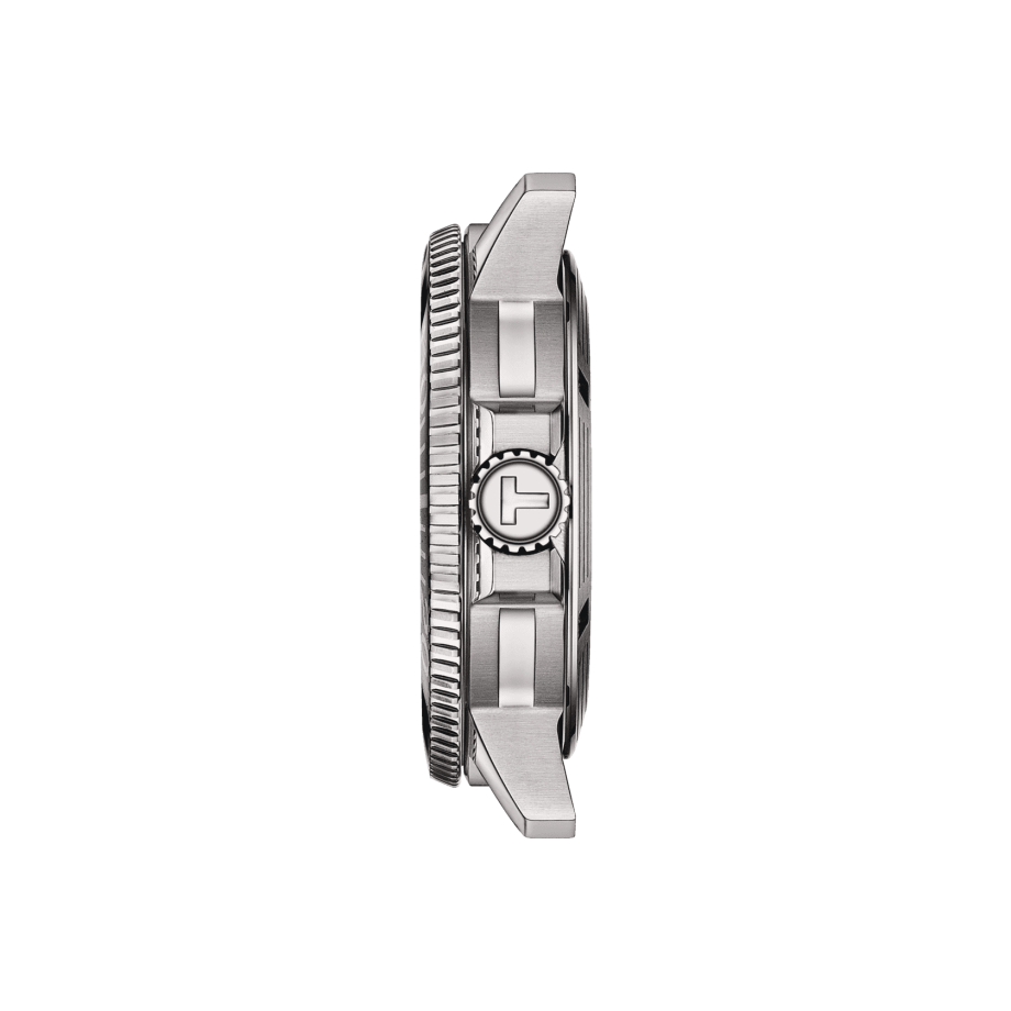 The Tissot Seastar 1000 Chronograph is the instinctive choice for water sports lovers. Its impressive water-resistance up to a pressure of 30 bar (300 m/1000 ft) is combined with the energy of a Swiss-made quartz movement. And features all the element required in a useful instrument: screw-down crown and case back, unidirectional steel bezel with aluminium ring and highly luminescent material for excellent readability in the dark.