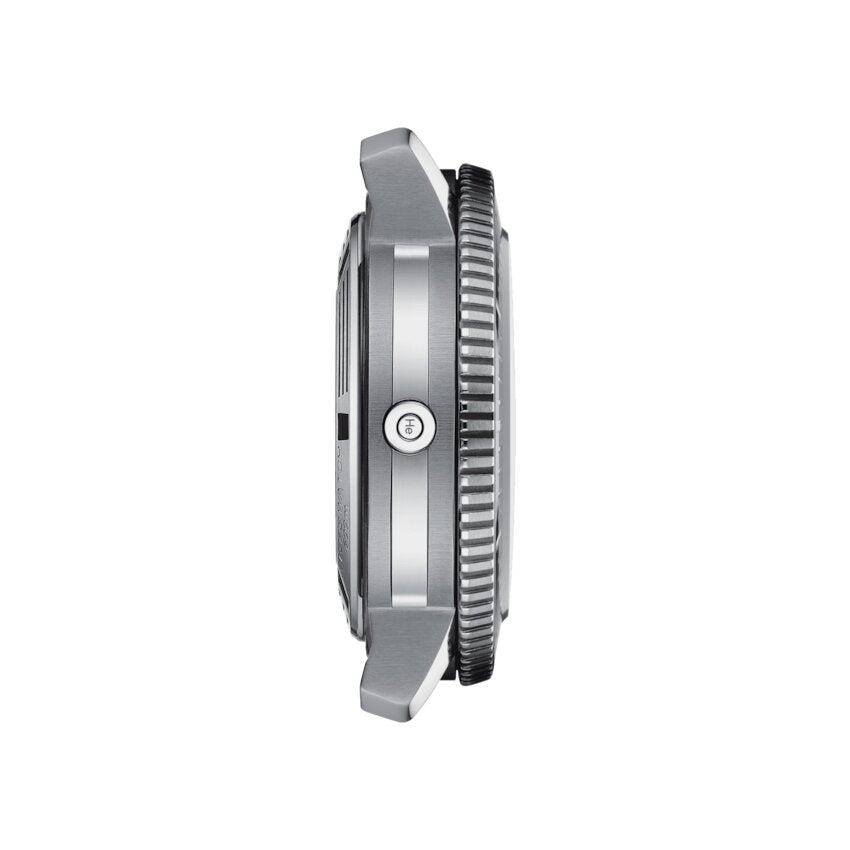 The Tissot Seastar 1000 Chronograph is the instinctive choice for water sports lovers. Its impressive water-resistance up to a pressure of 30 bar (300 m/1000 ft) is combined with the energy of a Swiss-made quartz movement. And features all the element required in a useful instrument: screw-down crown and case back, unidirectional steel bezel with aluminium ring and highly luminescent material for excellent readability in the dark.